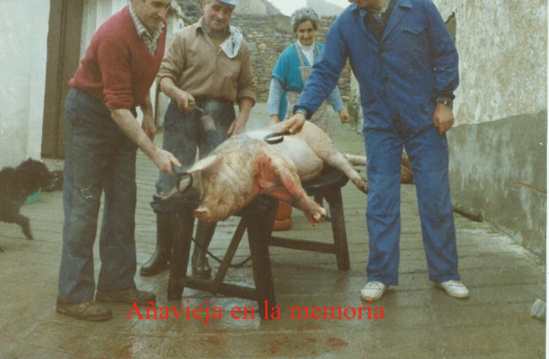 7. El tío Gurmersindo, Tere, Rafa, tío Andrés presenciando al animal