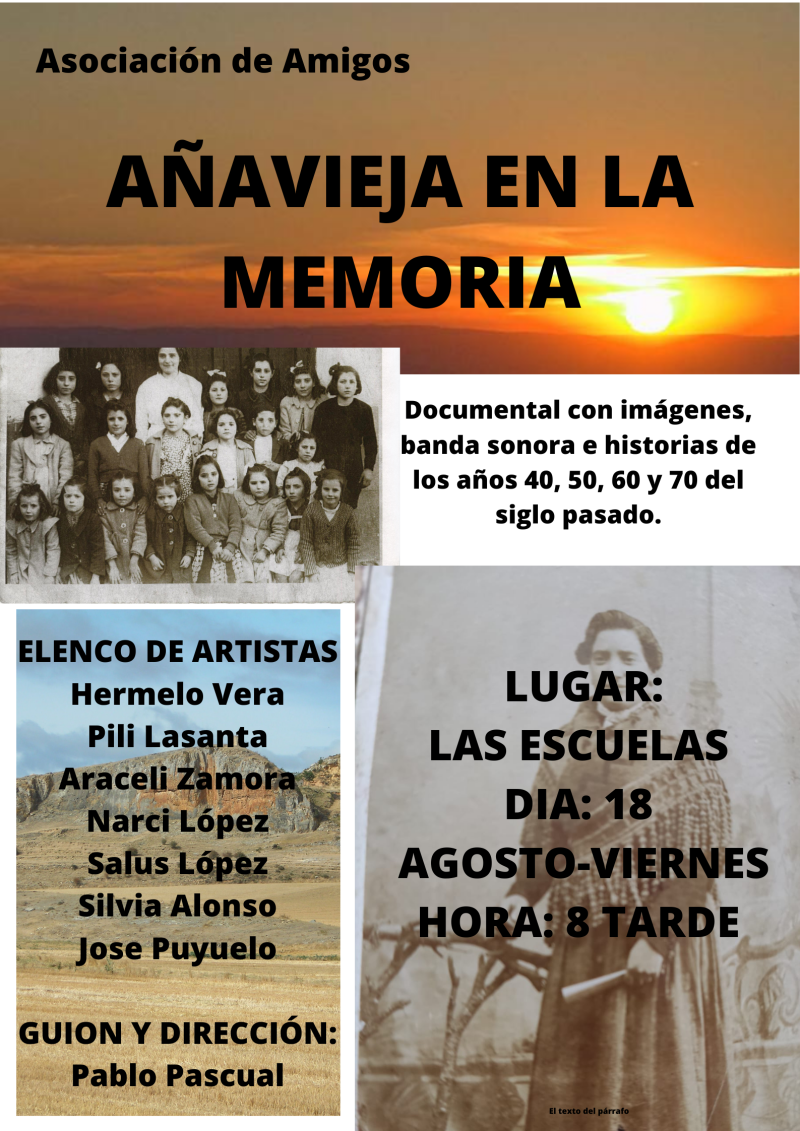 - verano de 2023: el grupo AÑAVIEJA EN LA MEMORIA empieza su andadura, con el objetivo de preservar la memoria del pueblo y hacerla partícipe a todos, los del pueblo y pueblos de la comarca.